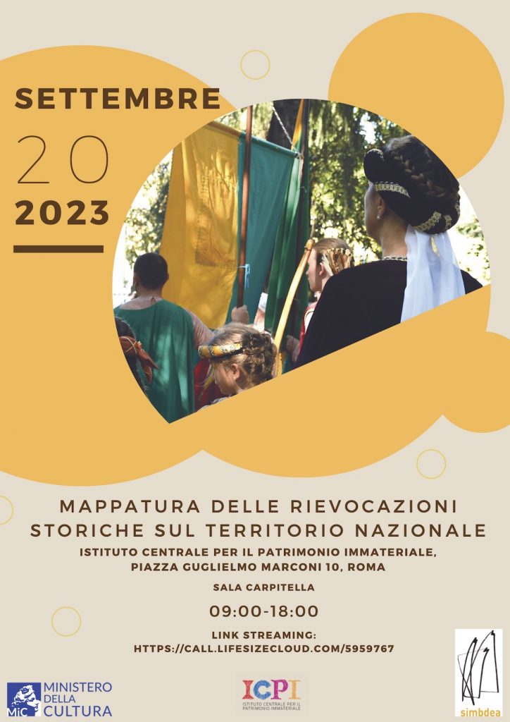 Il Progetto “Mappatura delle rievocazioni storiche” è stato ideato e condotto dall’Istituto Centrale per il Patrimonio Immateriale (ICPI) del Ministero della Cultura, con la collaborazione della Società Italiana per la Museografia e i Beni DEA (SIMBDEA), con l’obiettivo di realizzare un’ampia ricognizione sul territorio nazionale a carattere demoetnoantropologico volta a conoscere la varietà di queste espressioni culturali contemporanee in crescita, caratterizzate da una grande vitalità. È stato innanzitutto istituito un Comitato scientifico formato da esperti del settore ed elaborato un elenco di 1294 manifestazioni a partire da diverse fonti. In questa fase è stata preziosa la collaborazione dei funzionari responsabili dell’area V – patrimonio demoetnoantropologico e dei funzionari demoetnoantropologi delle Soprintendenze Archeologia Belle Arti e Paesaggio così come dell’Unione Nazionale Pro Loco d’Italia (UNPLI). Otto antropologi culturali coinvolti nel progetto hanno approfondito 418 rievocazioni compilando le “schede evento” elaborate dall’Istituto Centrale per il Catalogo e la Documentazione (ICCD), un nuovo strumento che questo progetto ha permesso di sperimentare. Successivamente, 25 di queste rievocazioni sono state documentate qualitativamente dai ricercatori, realizzando ricerche sul campo e utilizzando la scheda R.E.I.L. – Registro delle Eredità Immateriali di Lombardia. Si tratta di uno strumento elaborato dalla Regione Lombardia per documentare in forma partecipata il patrimonio culturale immateriale e qui presentato con piccole modifiche come “scheda ICH”.